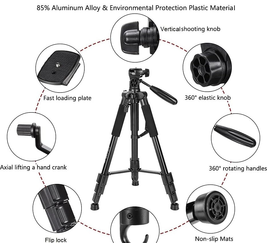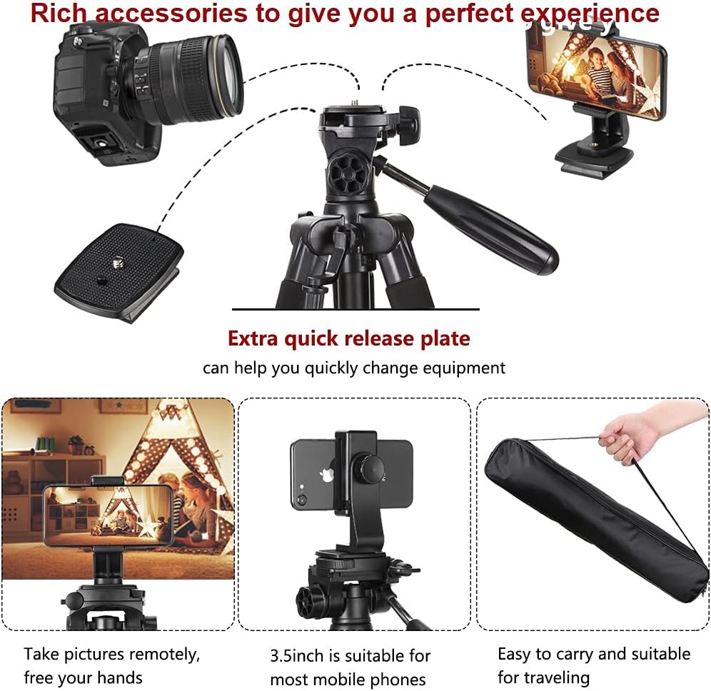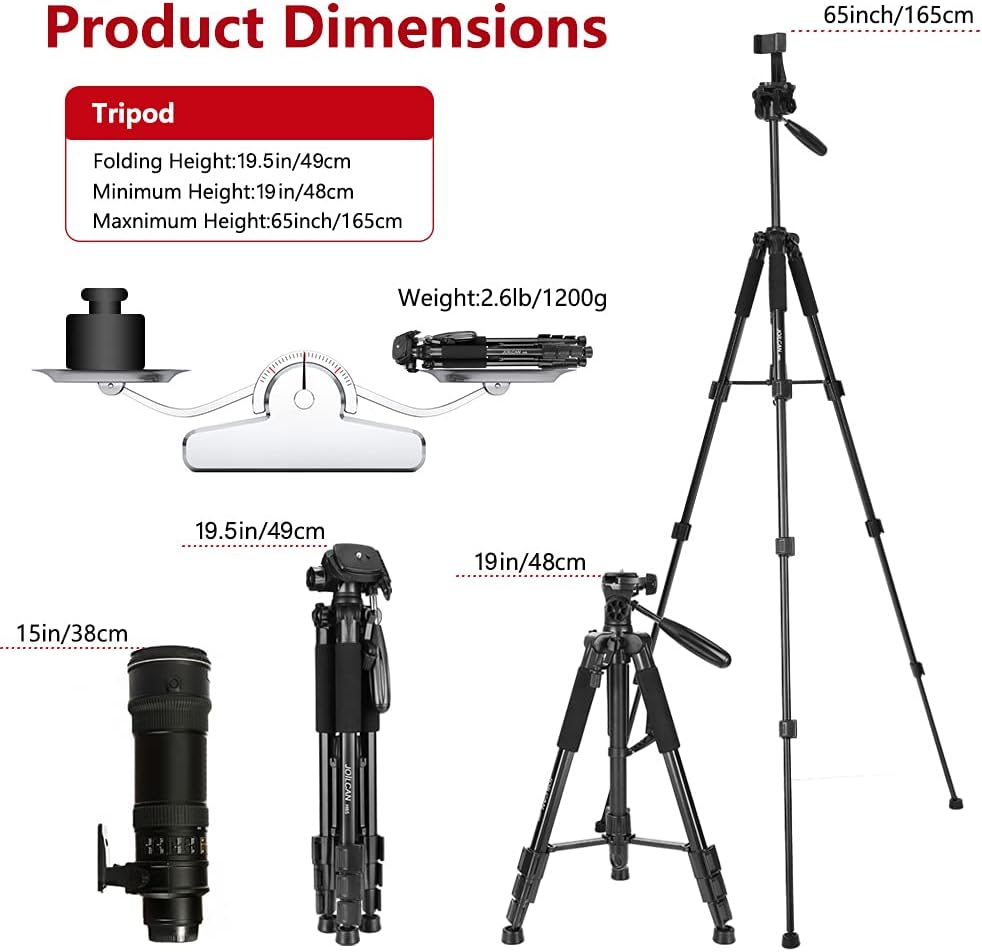 Compact Advanced Aluminum Tripod - Max Height 65". The tripod has a 3-way pan-head with quick release.